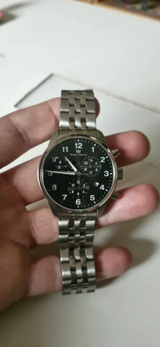 Reloj de pulsera plateado y negro