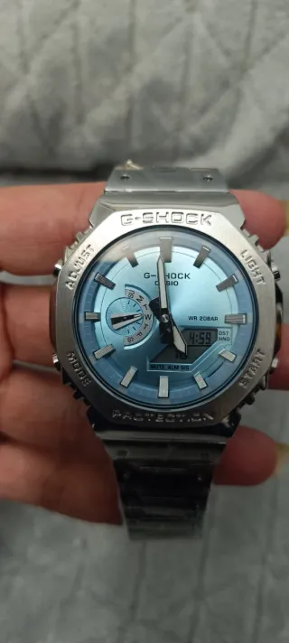 Reloj como el G-Shock con un diseño moderno y llamativo.GM2100 No tiene bluetooth - Esfera de color azul. - Correa y caja de acabado plateado.