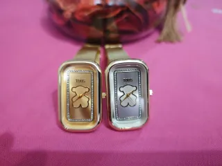 Elegantes relojes oso con un diseño moderno. - Acabado en dorado y plateado. - Detalle de osito Tous en la esfera. - Bisel adornado con pequeñas piedras. Precio 25€ cada uno.