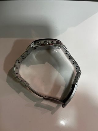 Elegante reloj unisex con un diseño moderno y versátil. - Esfera de color negro. - Correa de eslabones plateada. - Indicador de fecha. - usado-(sin caja)