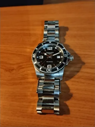 Reloj Longines Hydroconquest en fantástico estado. Un accesorio elegante y funcional. - Esfera negra. - Bisel giratorio unidireccional. - Brazalete de acero inoxidable.