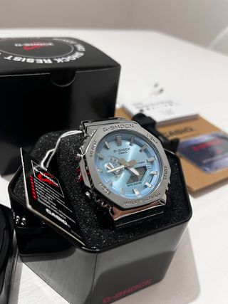 🔹 Estado: Nuevo / En excelente estado 🔹 Características: ✅ Caja y bisel de acero inoxidable para máxima resistencia y estilo ✅ Diseño minimalista ✅ Resistente a los golpes y al agua hasta 200M ✅ Funciones: Hora mundial, cronómetro, temporizador, alarma, luz LED 💥 Ideal para coleccionistas o para quienes buscan un reloj duradero y con estilo! 📦 Entrega en mano o envío disponible. - Diseño G-SHOCK. - Bisel con detalles de colores. - Correa plateada.