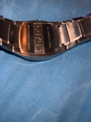 Elegante reloj Lotus con diseño original, cronógrafo y resistencia al agua. - Esfera negra con detalles plateados. - Correa de material resistente. - Resistente al agua hasta 100 metros (WR 100).
