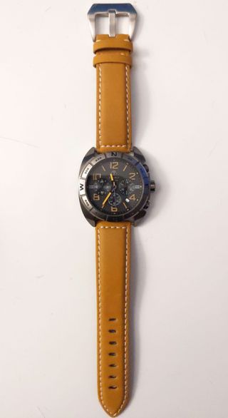 ENVIO POR WALLAPOP A PARTIR DEL 1 DE ENERO Reloj Timberland con correa de cuero marrón y detalles plateados. Funciona perfectamente, lleva pila recien puesta. Usa correa de 24mm, pero regalo correa de 22mm color camel. - Correa de cuero de 22mm nueva. - Bisel con indicaciones de puntos cardinales. Ideal para regalo