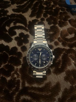 Elegante reloj de Emporio Armani con una esfera azul y detalles plateados. - Diseño moderno y sofisticado. - Correa de metal. - Bisel con marcadores. funciona y está muy bien conservado
