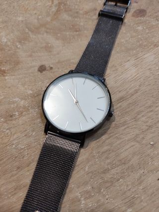 Reloj automátio con esfera negra y detalles plateados. Un diseño elegante y funcional. Mecanismo visible en la parte posterior. Totalmente nuevo, a estrenar. Precio algo negociable.