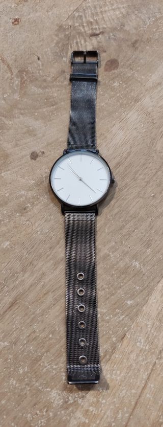 Elegante reloj para caballero con un diseño moderno y sofisticado. Su correa de malla le da un toque distintivo. - Esfera blanca minimalista. - Correa de malla ajustable. - Cierre de seguridad.