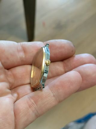 Elegante reloj Omega De Ville con una combinación de colores oro y plata. - Esfera dorada. - Bisel plateado. - Diseño clásico y refinado. Sin armis,nuevo como se puede ver con las etiquetas