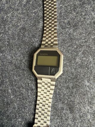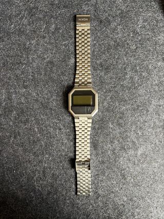 Reloj Nixon Re-Run con acabado plateado. - Diseño retro. - Correa de metal. - Pantalla digital.