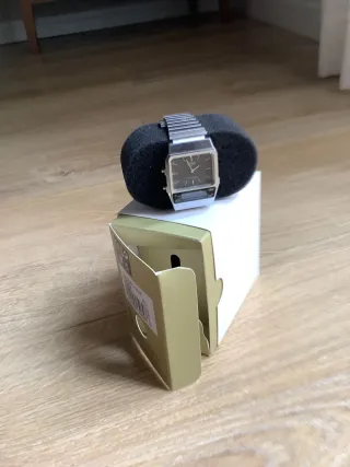 Reloj Casio digital con correa de metal. - Esfera digital. - Resistente al agua 5 BAR. - Iluminador para ver la hora en la oscuridad. -un botón esta estropeado pero no pierde su función. -la correa no es la original, pero es adaptable ha cualquier talla. -tiene algunos arañazos pero todo funcional.