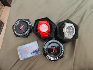 Se venden dos relojes G-Shock, uno en color rojo y otro en color plateado, ambos con su caja original. - Reloj G-Shock rojo. - Reloj G-Shock plateado. - Incluye caja de presentación. - Precio por C/u