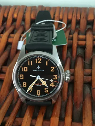 Reloj de pulsera STEELFLIER con diseño tipo piloto. - Esfera negra con números e indicadores en color naranja. - Correa negra. - Caja plateada. Reloj de cuarzo con movimiento de segundero continuo, caja de acero y dial negro con números y agujas en color naranja. Corona roscada sumergible 200 m. Correa de acero. Calibre cuarzo Seiko Vh31 Estado: 10/10 (Nuevo, nunca usado). Perfecto para amantes de los relojes tipo #Seiko, #Hamilton o #Flieger. 📦 Envío rápido (normalmente el mismo día o al día siguiente). ✨ ¡Echa un vistazo a mi perfil para más artículos de deporte y ahorra en gastos de envío combinando productos!