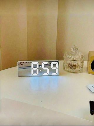 Elegante reloj digital con acabado espejo. Reloj despertador digital LED con pantalla grande silencioso, brillo ajustable, formato de 12/24 horas, se puede alimentar con batería o cable USB. -Dos niveles de ajuste de brillo + modo nocturno Dos conjuntos de alarmas configurables: 1-5, 1-6 y 1-7 en modo de día laborable -Cuando se alimenta por USB, la pantalla LED permanece fija. Cuando se alimenta con pilas AAA, viene con función de memoria de tiempo, la pantalla LED se activa mediante control de voz -Se puede usar con una fuente de alimentación de 7 voltios de 3 secciones o con USB. Nuevo en su caja