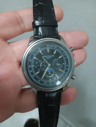 Elegante reloj automático con múltiples funciones y visualización de la fase lunar. Su diseño combina sofisticación y practicidad.funciona todo correcto,plástico protector debajo de la tapa y correa en buen estado con alguna señal de no haberse usado. - Esfera negra con detalles plateados. - Correa de piel negra. - Indicador de fase lunar.