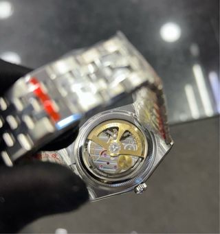 reloj mod Seiko bicolor - Datejust. - Diseño bicolor (plateado y dorado). - Esfera con números romanos. - Cristal de zafiro antirayaduras. - Tapa trasera de cristal con mecanismo a la vista. - Correa estilo jubilee. - Correa y caja en acero inoxidable. - Bisel estriado. - Correa con cierre doble.