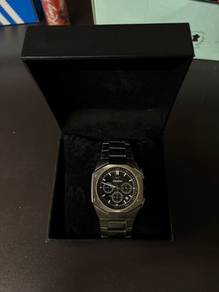 Reloj analógico BMW Motorroad conmemorativo del 30 aniversario. - Esfera negra con detalles plateados. - Bisel con taquímetro. - Correa de acero inoxidable. - Mecánica suiza. - Va con su caja - No tengo factura por qué ha sido un regalo de BMW.