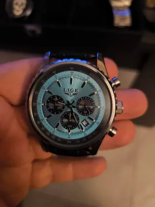 Elegante reloj LIGE con un diseño sofisticado y moderno. Ideal para complementar tu estilo. - Esfera de color azul. - Detalles en plateado. - Correa de cuero negra.