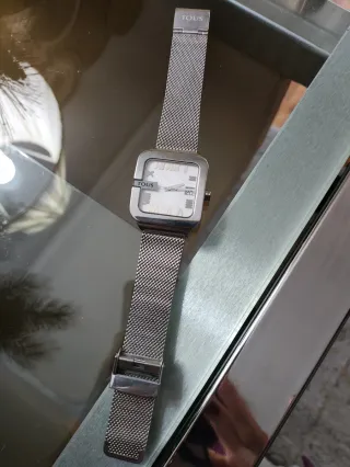 Reloj perfecto para mujer. Con una esfera de cristal mineral de unos 25 mm aproximadamente y una caja de acero inoxidable de unos 27 mm. El reloj cuenta con un movimiento de cuarzo japonés de gran precisión y una resistencia al agua de 50m. El brazalete también es de acero inoxidable de gran calidad. El reloj se encuentra nuevo, con las pegatinas protectoras y nunca ha sido usado. Para cualquier pregunta no dudes en escribirme!