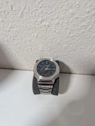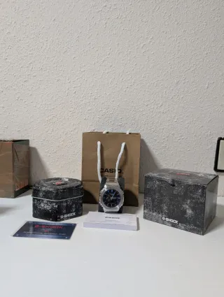 Reloj Casio G-Shock plateado – Set completo Vendo Casio G-Shock original en color plateado, en muy buen estado. Diseño resistente y moderno, perfecto tanto para uso diario como para colección. ✔️ Incluye todo lo que aparece en la foto: Reloj Casio G-Shock Caja original G-Shock Lata metálica Bolsa Casio Manuales Tarjeta de garantía internacional ✔️ Funciona perfectamente ✔️ Muy bien cuidado ✔️ Modelo icónico, resistente a golpes y agua Se envía bien protegido y listo para regalar. Para cualquier duda o si quieres más fotos, escríbeme sin compromiso.