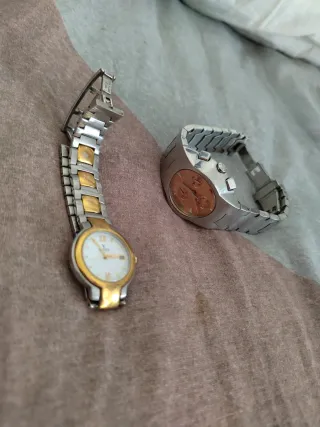 Conjunto de dos relojes , se venden juntos , háblame y negociamos - Un reloj con esfera blanca y detalles dorados. - Otro reloj con esfera de color cobre y detalles plateados