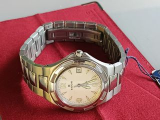 Elegante reloj para caballero de la marca Edox. - Nuevo con etiqueta y estuche oroginal - Combinación de tonos dorados y plateados. - Esfera blanca con detalles. - Ventana de fecha. - El reloj está tal cual se ve en las fotos.