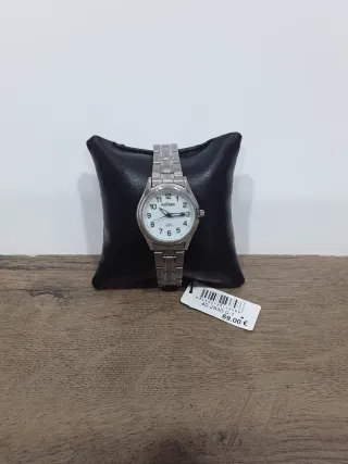 Elegante reloj unisex con un diseño clásico y funcional. - Esfera blanca con números arábigos. - Correa de eslabones plateada. - Cierre de seguridad. - Sin pila.