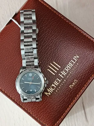 Elegante reloj de pulsera para mujer. - Nuevo con etiqueta y estuche original. El estuche puede tener roces de estar guardado. - Esfera de color azul. - Caja y brazalete de acero. - Detalle de la marca Michel Herbelin en la esfera. - El reloj está tal cual se ve en las imagnes