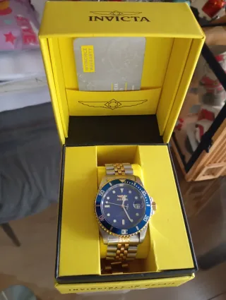 Reloj de pulsera con diseño deportivo y elegante. - Esfera negra con detalles en dorado. - Bisel giratorio unidireccional. - Correa de acero inoxidable. - Resistencia al agua 100m.cristal de zafiro corona roscada ect usado una vez regalo de navidad