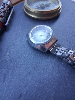 Reloj de pulsera automático de la marca Helvetia. Recien revisado, limpiado y engrasado por relojero profesional. El reloj funciona muy bien, habria que pulir un poco el plexi para que quede perfecto, son arañazos superficiales nada profundo. Lo vendo por que no es mi estilo