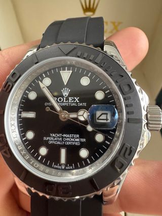 Reloj de pulsera Rolex Yacht-Master con esfera negra - Bisel cerámico bidireccional - Movimiento automático. - Cristal de zafiro. - Correa de caucho OYSTERFLEX -Caja de acero Oyster -Brazalete Oyster con cierre de seguridad Oysterlock -Resistente al agua y Sumergible. - Marcadores de hora luminosos.