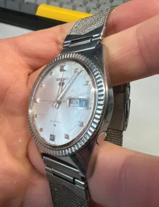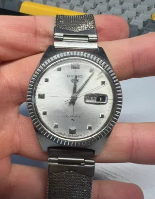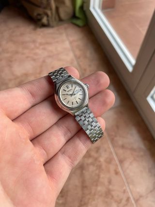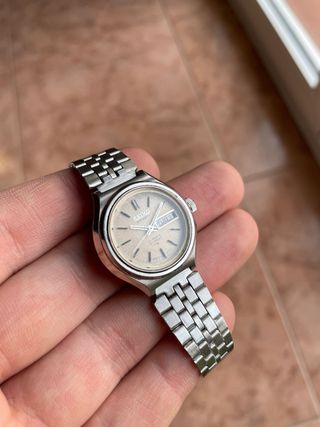 Reloj Seiko automático en perfectas condiciones de funcionamiento y estéticas. Fechador con cambio rápido de día y complicación de parada del segundero al cambiar de hora. Tal cual se ve en las fotografías. Muy buenas condiciones pese a sus años. -> 📅 Modelo fabricado en 1978. -> ⚙️ Mecanismo automático. -> 🔗 Pulsera completamente original con la firma de la marca. -> 📏 37.4 mm de diámetro sin corona. -> 🗳️ Sin caja ni papeles.