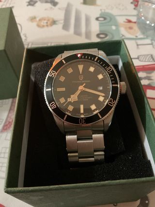 Reloj de pulsera Pagani Design con movimiento automático y función GMT. - Bisel giratorio con escala GMT. - Indicadores luminosos en la esfera. - Resistencia al agua de 10 BAR (100 metros). 90 euros.