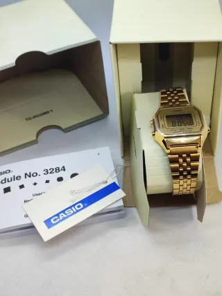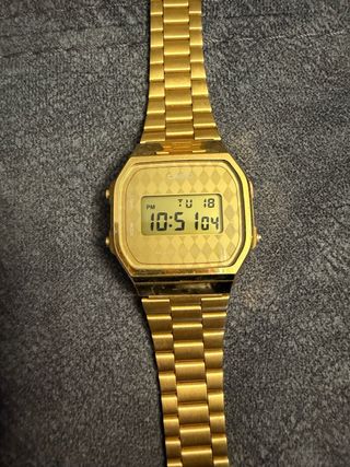 Elegante reloj Casio con acabado dorado, perfecto para el día a día. - Diseño clásico y atemporal. - Pulsera metálica. - Esfera digital. - Resistente al agua.