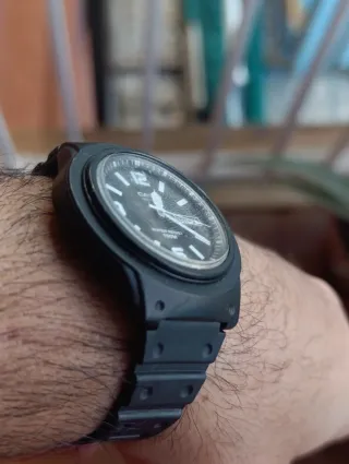 Reloj Casio MTD-1053D-2AV sumergible 200m. Es el reloj estilo buceo / diver más económico del mercado. Incluye eslabones extra. El cristal y el bisel tienen alguna marca de uso. Características: - Correa y caja de acero inoxidable - Corona roscada - Tapa trasera roscada - Resistencia al agua hasta una profundidad de 20 bares (200M) - Bisel giratorio unidireccional - Cristal mineral - Función de fecha incorporada - Dimensiones 48 × 42.6 × 11.5 mm Etiquetas: orient seiko citizen tissot hamilton certina festina lotus vostok tortuga skx007 hydroconquest ds action marlin MDV106 submariner