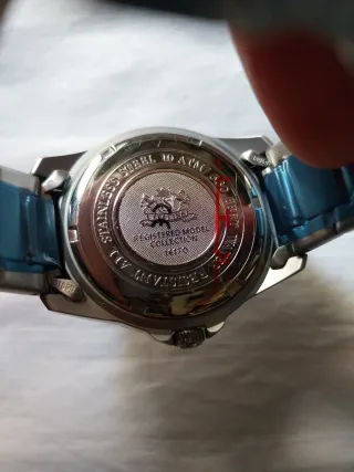 Reloj de pulsera con esfera azul y detalles plateados. - Diseño deportivo y elegante. - Correa de metal. - Bisel con marcadores. - Necesita pila.
