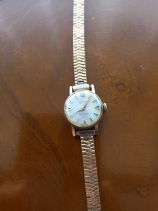 Elegante reloj de pulsera para mujer.Funciona perfectamente. Años 50 - Diseño clásico con detalles dorados. - Esfera blanca. - Correa ajustable.