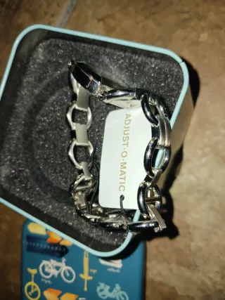 Elegante reloj de pulsera con un diseño ovalado y eslabones. - Brazalete de eslabones metálicos. - Esfera ovalada. - Cierre de seguridad. Batería de cambiar.