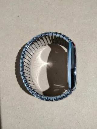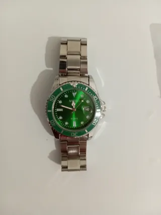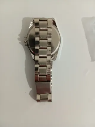 Reloj nuevo a estrenar Le quite dos eslabones porque era grande se lo regalé a mi hijo para reyes pero prefiere otro tipo de reloj está nuevo y los eslabones están en la caja por si hay que agrandar la pulsera,muy bonito y económico .es precio es innegociable