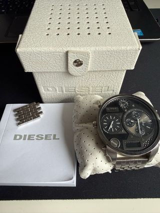 Reloj de pulsera Diesel con un diseño moderno y llamativo. Incluye su caja original y manual. Puesto muy pocas veces. - Correa de eslabones. - Esfera multifunción. - Eslabones extra. - Diámetro grande de la esfera. - Calibre de cuarzo. - Diámetro 57mm. No se hacen envios.