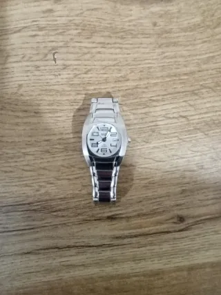 Reloj de pulsera con un diseño clásico y elegante. Con poco uso, muy bien conservado y económico, grande pero no pesa mucho, funciona todo correctamente, se puede probar sin compromiso, cualquier cosa me puedes escribir. - Correa de eslabones metálicos. - Cierre de seguridad.