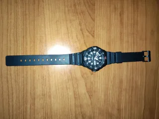 Reloj Casio de pulsera con correa negra. - Correa de resina. - Esfera con números grandes y marcadores de hora. - Bisel giratorio. Usado solo dos veces, no tiene señales pues de uso, está intacto.