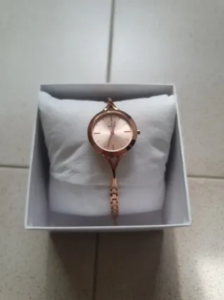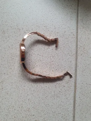Elegante reloj de pulsera con un diseño delicado. - Pulsera con eslabones en forma de flor. - Esfera ovalada. - Acabado dorado. -Nunca usado porque me queda grande y me lo regalararon. -No tiene la pila puesta