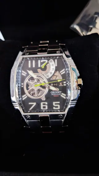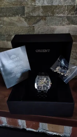 Reloj Orient automático con movimiento japonés de gran fiabilidad. Marca muy apreciada por coleccionistas de relojes automáticos. Muy buen estado y funcionando perfectamente. Eslabones originales incluidos para aumentar la pulsera en caso de que tu muñeca sea más grande. Se hacen envíos. Entrega en mano en San Martín de Valdeiglesias.
