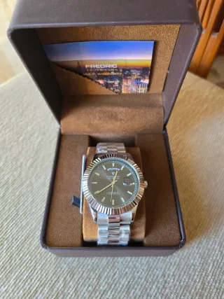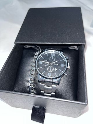 Reloj de hombre metalico con un diseño bonito y una pulsera Funciona perfectamente y biene en una caja Si tiene alguna pregunta no dude en escribirme