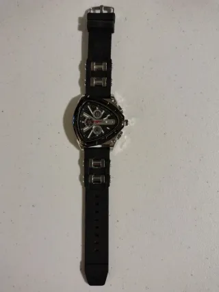 Elegante reloj de pulsera de la marca Lotus. - Diseño moderno con esfera negra. - Detalles plateados en la caja y la correa. - Resistente al agua 100M. - REGISTRADO 15317, modelo 15313.