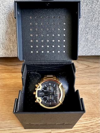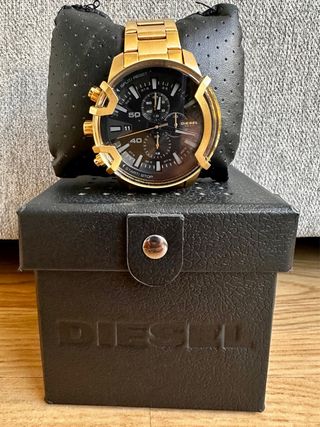 03-U585430 Buen estado. Es un reloj de pulsera para hombre de la serie Mega Chief de Diesel con un diseño grande y llamativo, pensado para destacar en la muñeca. Combina estilo casual y deportivo con funciones de cronógrafo y resistencia al agua, siendo ideal tanto para uso diario como ocasiones informales. 3 años de garantía. Disponible sólo para envío mediante wallapop o compra directa en nuestra web realcash. es. Enviamos a toda España excepto Canarias, Ceuta y Melilla.