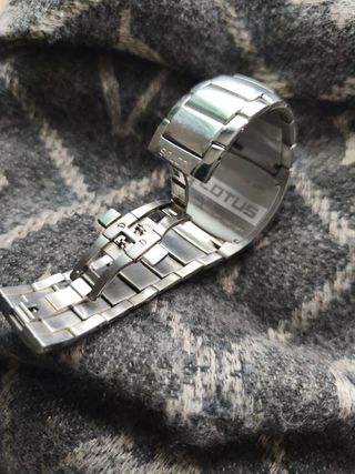 Elegante reloj de pulsera de la marca Lotus para hombre. Presenta una combinación de colores plateados y dorados que le otorgan un estilo sofisticado. - Caja y correa de acero inoxidable. - Esfera con detalles en dorado. - Cierre de seguridad.