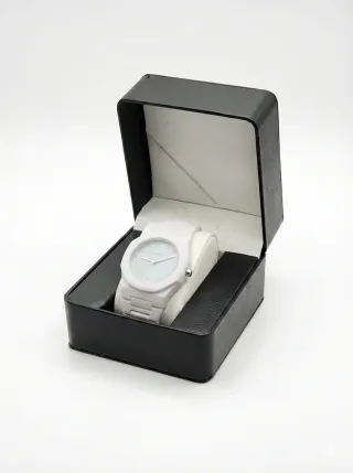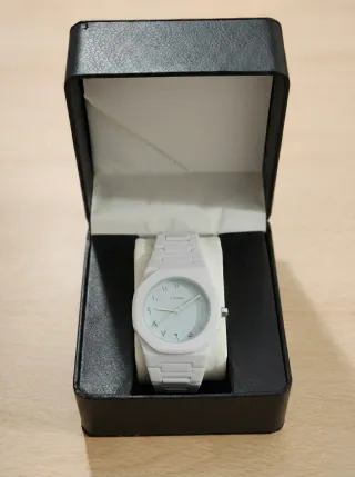 Vendo reloj de pulsera en color blanco mate (Ice White) con esfera de números árabes orientales. Diseño muy exclusivo y original. Características: ⚪ Estilo: "Arabic Dial" (Índices con numeración árabe). 📐 Diseño: Caja octagonal moderna (estilo urbano/lujo). 🎁 Estado: TOTALMENTE NUEVO. Sin usar, con los plásticos. Se entrega con su caja acolchada (ideal para regalo). Funciona perfectamente (pila incluida). 📍 Entrega: Hago envíos por Wallapop (rápido y protegido Palabras clave: reloj hombre, reloj mujer, unisex, números orientales , middle east, dubai style, moda, blanco, verano, ibiza, regalo, exclusivo, oferta.