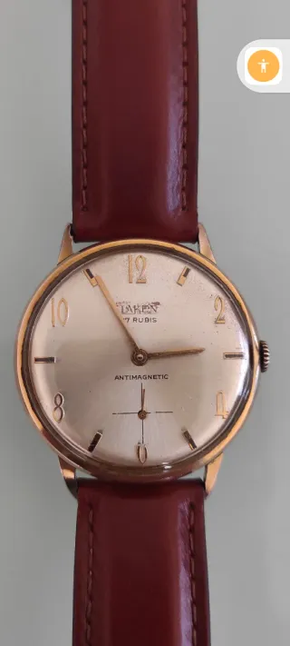 Reloj de pulsera Laken de hombre con correa de cuero. - Esfera plateada. - Detalles dorados en la caja y números. - Correa de cuero marrón. - Para reparar o para piezas. NO FUNCIONA NO REALIZO DEVOLUCIONES