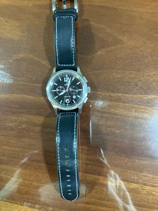 Unisex. Marca Kronos. Cronógrafo. Correa imitación de piel. Caja original. Sin estrenar. Esfera negra. Numeración en blanco. Agujas en rojo.